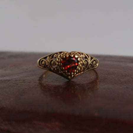 Openwork Heart Garnet Ring