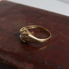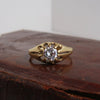 Vintage 9ct gold ring set with a round cubic zirconia in an open claw setting. Solid gold band with cut-out shoulders and a simple, classic profile.